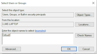 BUT. If you try and just type Default and press Check Names, it DOESN'T work, you have to type IIS AppPool\ at the start.